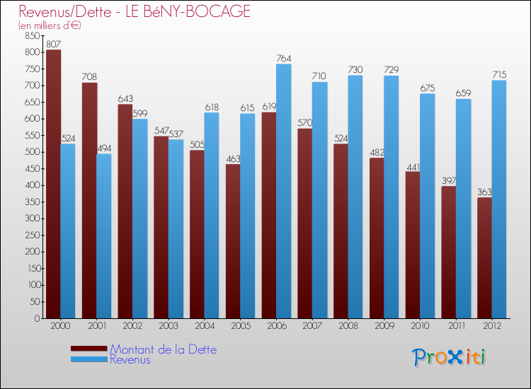 Comparaison Revenus/Dette de Le Bény-Bocage (de 2000 à 2012)