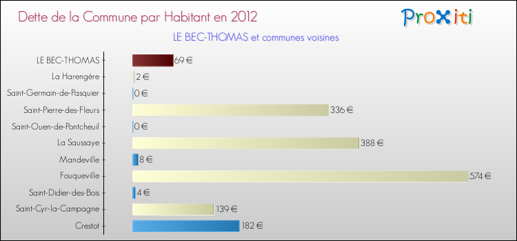 A Le Bec-Thomas, la dette due par habitant de la commune en 2012 est donc moins élevée de 86.52 % que pour des communes similaires.