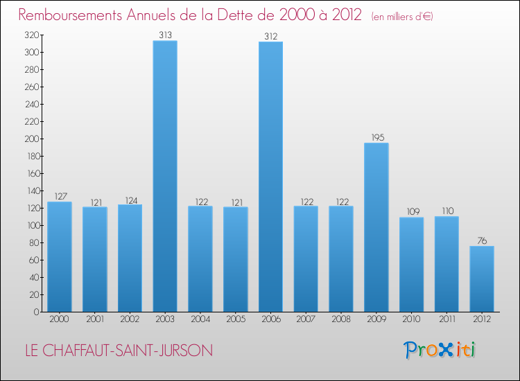 A noter : la valeur moyenne de la dette par habitant des communes françaises similaires à Le Chaffaut-Saint-Jurson était de 659 € par habitant, en 2012.