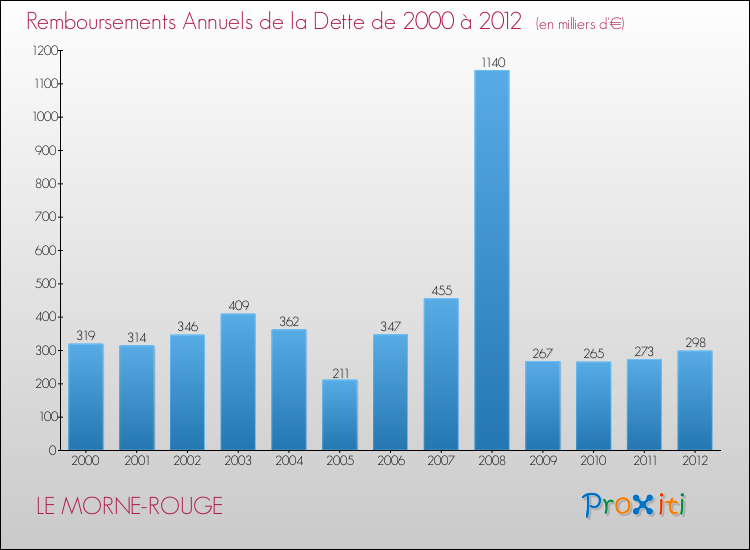 Par rapport aux 5235 habitants de Le Morne-Rouge, en 2012 le poids de cette dette représente 318 € par habitant.