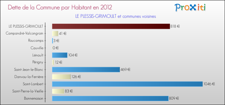 Par rapport aux 362 habitants de Le Plessis-Grimoult, en 2012 le poids de cette dette représente 818 € par habitant.