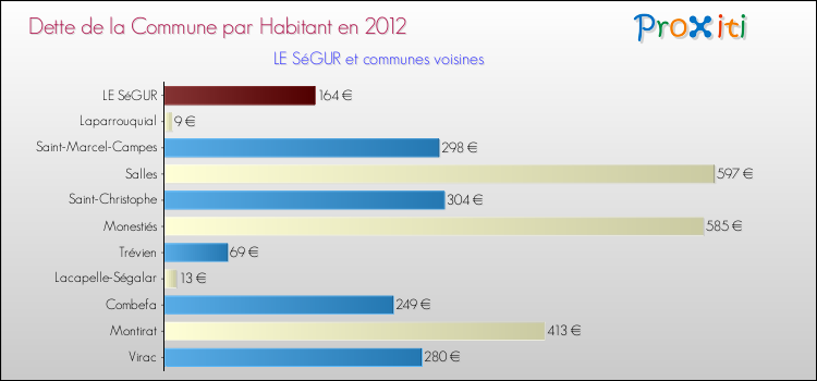 A Le Ségur, la dette due par habitant de la commune en 2012 est donc moins élevée de 67.07 % que pour des communes similaires.