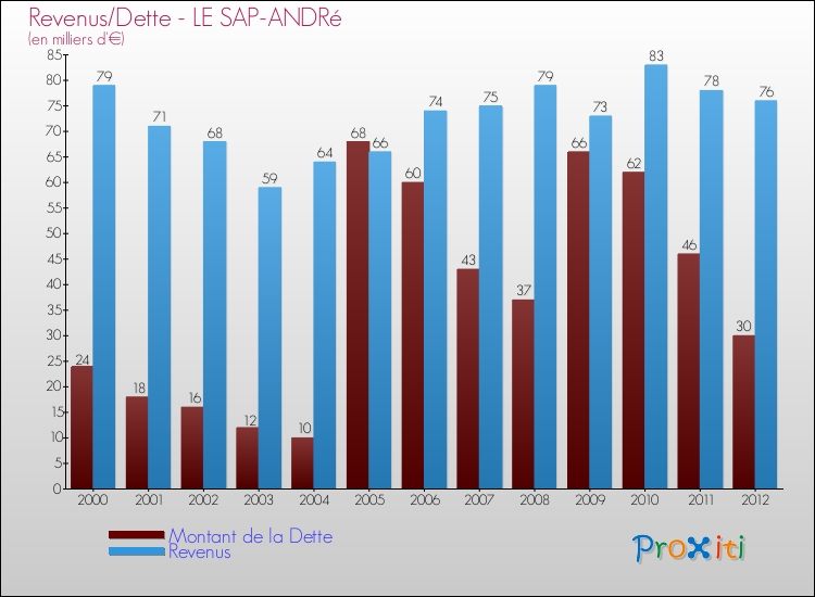 Comparaison Revenus/Dette de Le Sap-André (de 2000 à 2012)