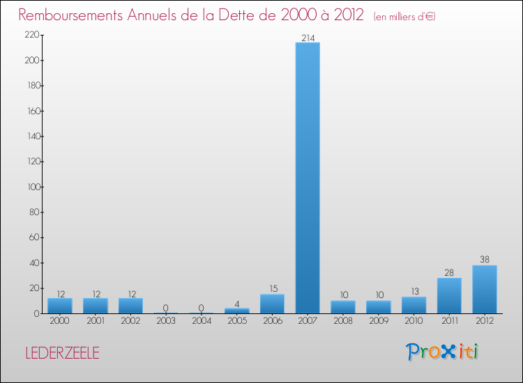 Par rapport aux 607 habitants de Lederzeele, en 2012 le poids de cette dette représente 541 € par habitant.