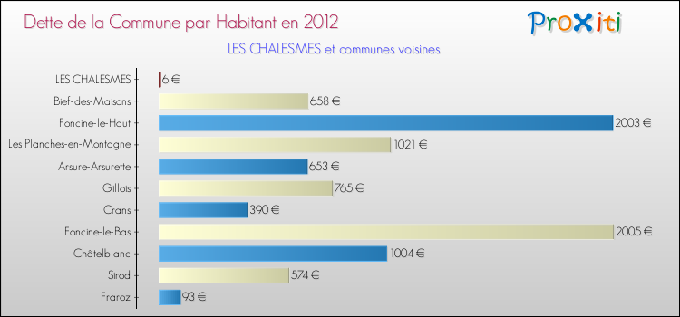 A Les Chalesmes, la dette due par habitant de la commune en 2012 est donc moins élevée de 98.81 % que pour des communes similaires.