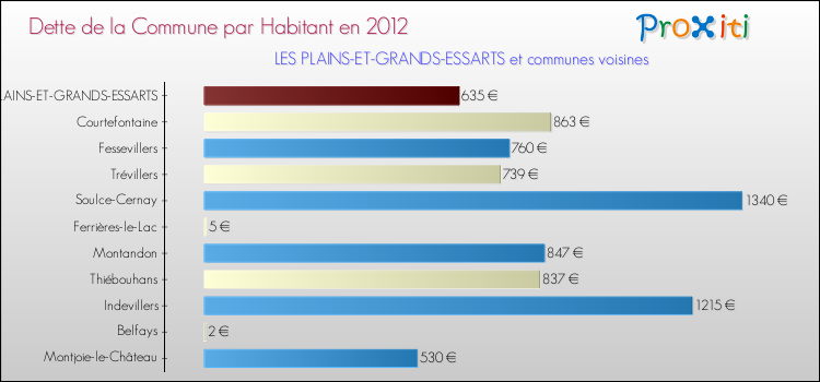 Par rapport aux 208 habitants de Les Plains-et-Grands-Essarts, en 2012 le poids de cette dette représente 635 € par habitant.