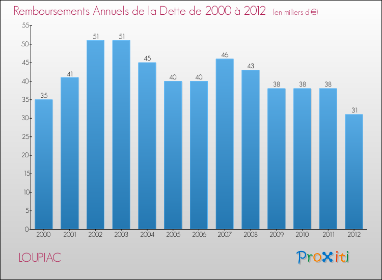 Annuités de la dette  pour LOUPIAC de 2000 à 2012