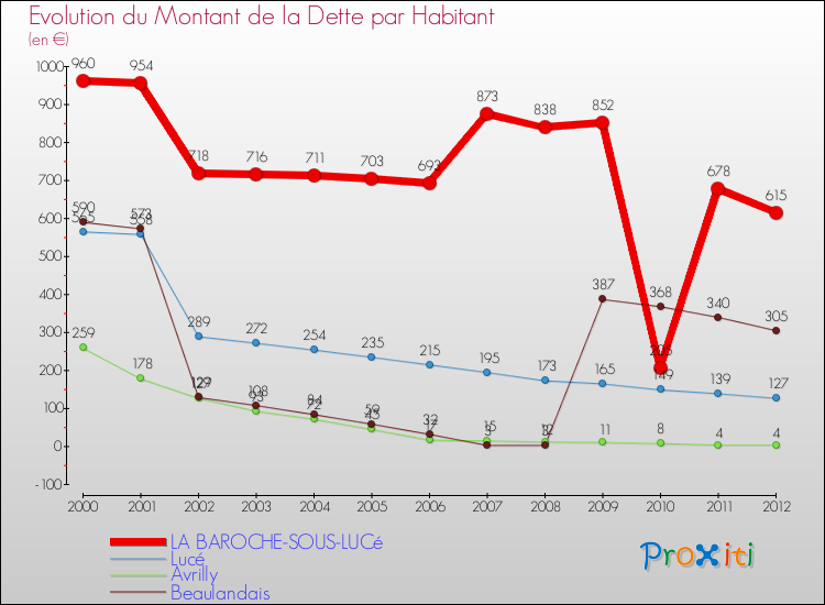 A La Baroche-sous-Lucé, ce montant de la dette est pourtant en baisse de 8.46 % par rapport à 2011.