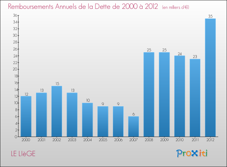 Par rapport aux 346 habitants de Le Liège, en 2012 le poids de cette dette représente 1155 € par habitant.