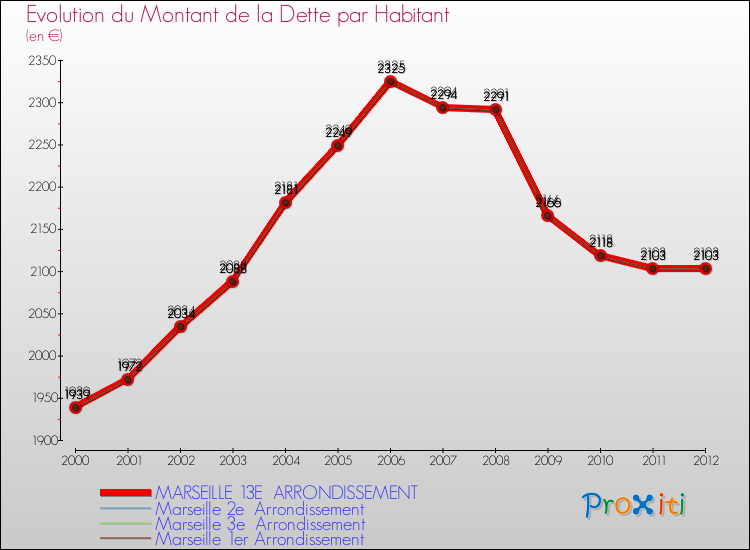 A Marseille 13e Arrondissement, la dette par habitant a donc augmenté de 8.46 % entre 2000 et 2012.