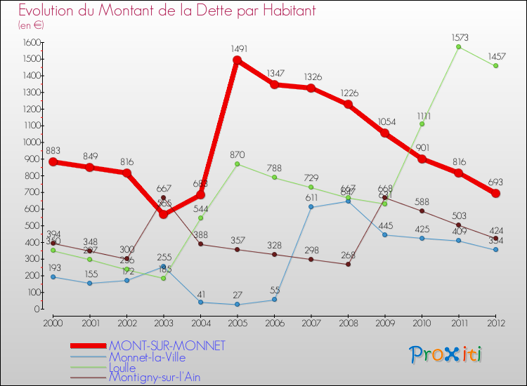 Par rapport aux 217 habitants de Mont-sur-Monnet, en 2012 le poids de cette dette représente 693 € par habitant.