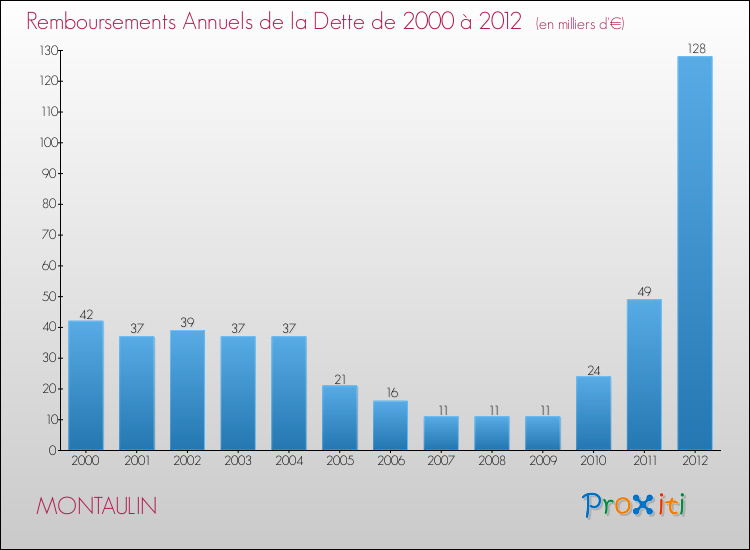 Par rapport aux 760 habitants de Montaulin, en 2012 le poids de cette dette représente 522 € par habitant.