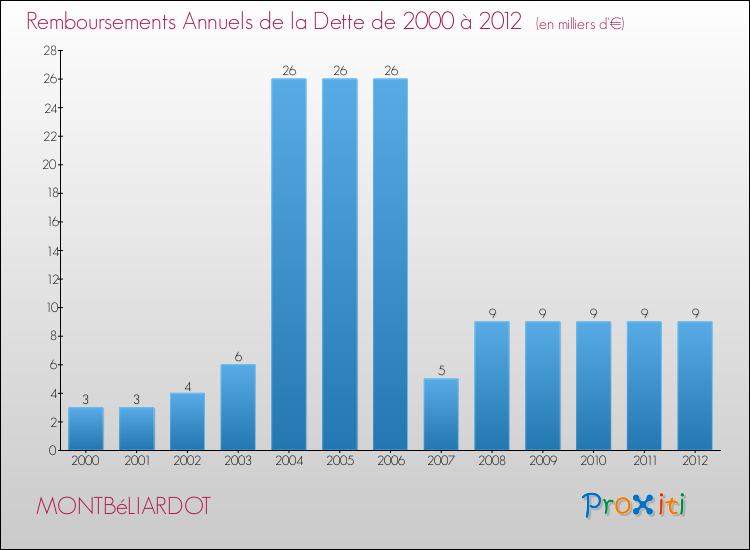 Par rapport aux 104 habitants de Montbéliardot, en 2012 le poids de cette dette représente 128 € par habitant.