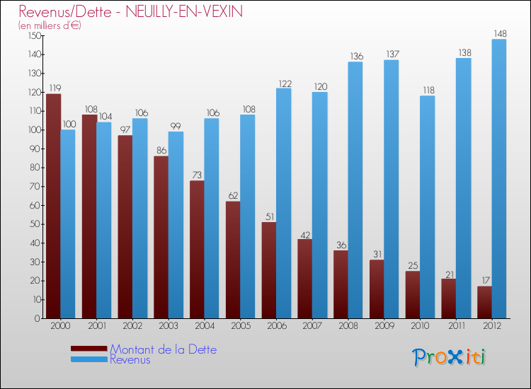 Comparaison Revenus/Dette de Neuilly-en-Vexin (de 2000 à 2012)