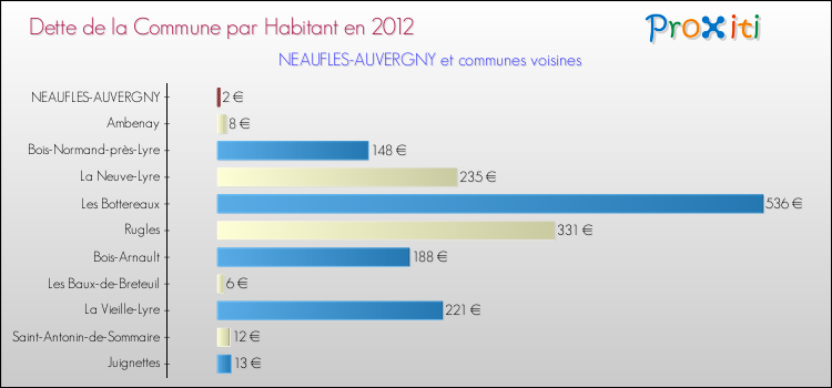 A Neaufles-Auvergny, la dette due par habitant de la commune en 2012 est donc moins élevée de 99.63 % que pour des communes similaires.