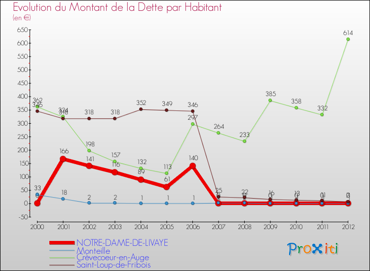 Par rapport aux 133 habitants de Notre-Dame-de-Livaye, en 2012 le poids de cette dette représente 0 € par habitant.
