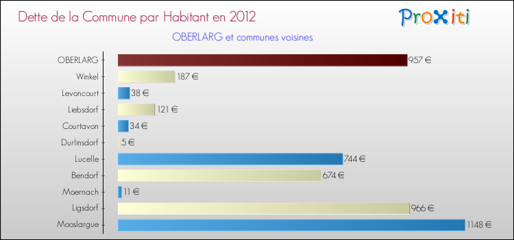 A Oberlarg, la dette due par habitant de la commune en 2012 est donc plus élevée de 89.5 % que pour des communes similaires.