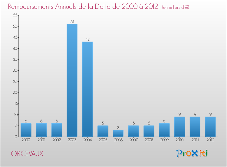 Par rapport aux 120 habitants de Orcevaux, en 2012 le poids de cette dette représente 206 € par habitant.