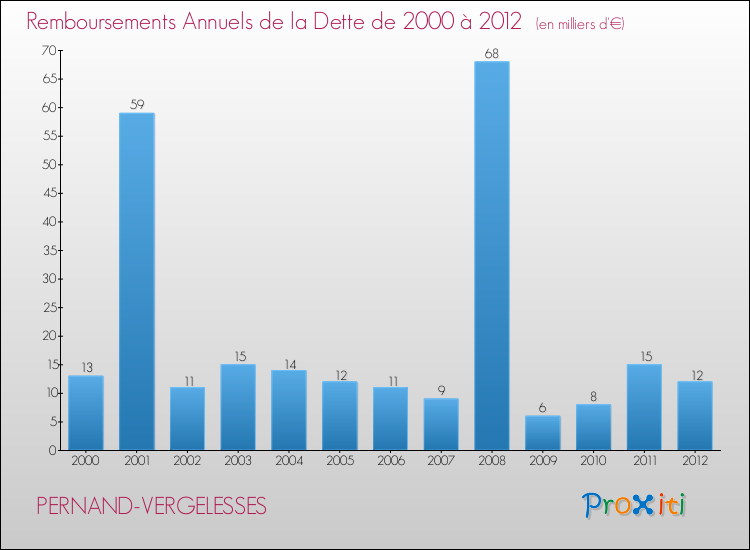 A Pernand-Vergelesses, la dette par habitant a donc baissé de 55.41 % entre 2000 et 2012.