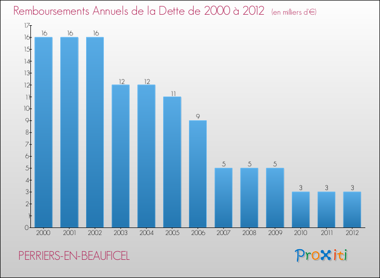 Annuités de la dette  pour PERRIERS-EN-BEAUFICEL de 2000 à 2012