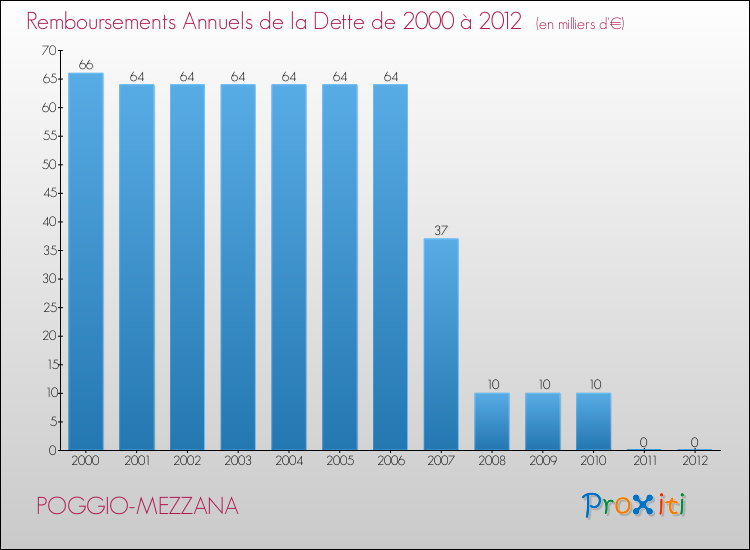 A Poggio-Mezzana, la dette par habitant a donc baissé de 100 % entre 2000 et 2012.