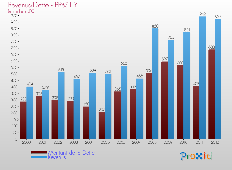 Par rapport aux 694 habitants de Présilly, en 2012 le poids de cette dette représente 991 € par habitant.