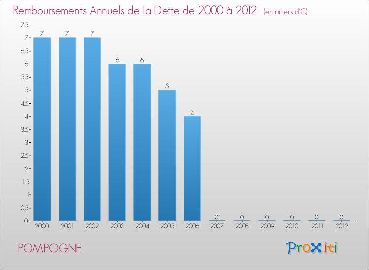 En 2012, Pompogne a dû payer 0 € rien que pour rembourser sa dette.