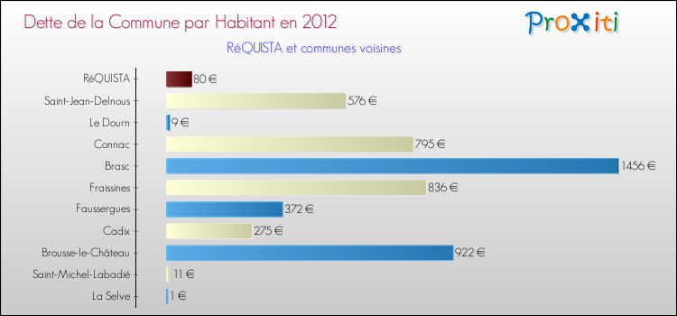 Par rapport aux 2141 habitants de Réquista, en 2012 le poids de cette dette représente 80 € par habitant.