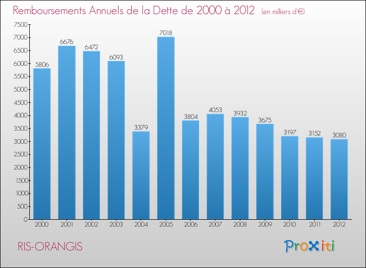 A Ris-Orangis, ce montant de la dette est pourtant en baisse de 0.7 % par rapport à 2011.