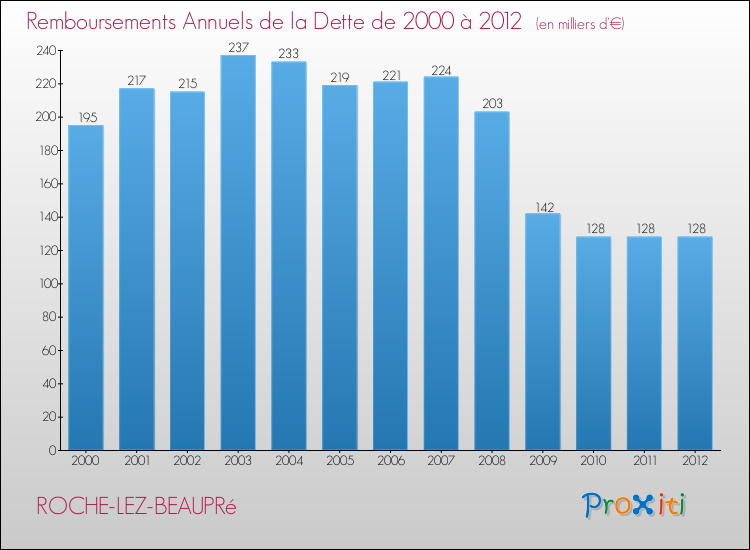 A Roche-lez-Beaupré, ce montant de la dette est pourtant en baisse de 12.23 % par rapport à 2011.