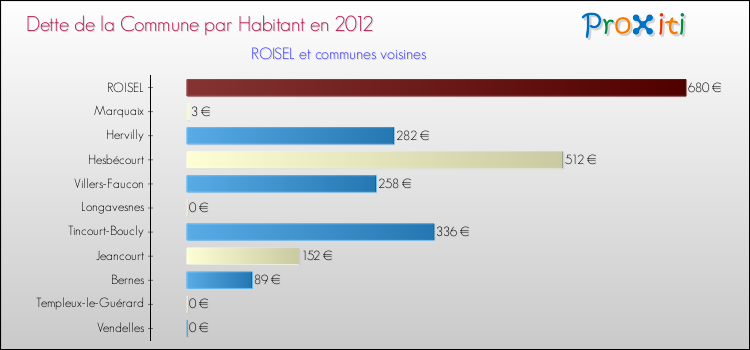 A Roisel, la dette due par habitant de la commune en 2012 est donc plus élevée de 3.19 % que pour des communes similaires.