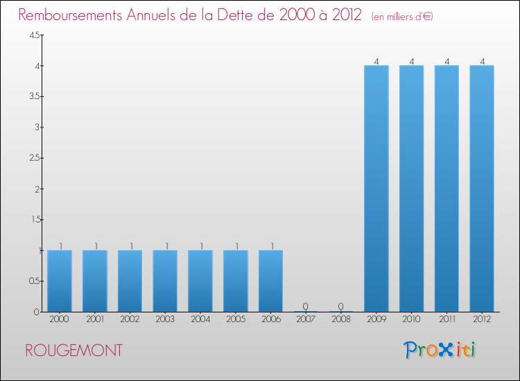 Par rapport aux 180 habitants de Rougemont, en 2012 le poids de cette dette représente 213 € par habitant.