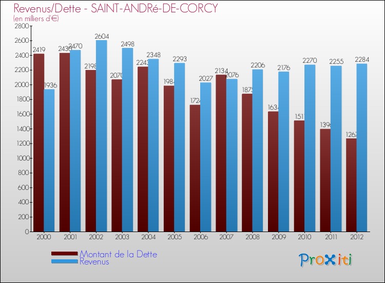 Comparaison Revenus/Dette de Saint-André-de-Corcy (de 2000 à 2012)