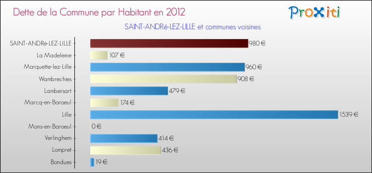 A Saint-André-lez-Lille, la dette due par habitant de la commune en 2012 est donc plus élevée de 2.62 % que pour des communes similaires.