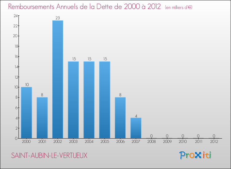 En 2012, Saint-Aubin-le-Vertueux a dû payer 0 € rien que pour rembourser sa dette.