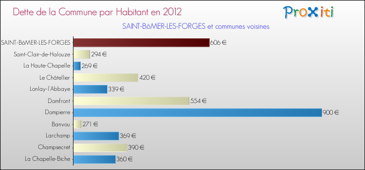 Comparaison de la dette par habitant de la commune en 2012 pour SAINT-BôMER-LES-FORGES et les communes voisines