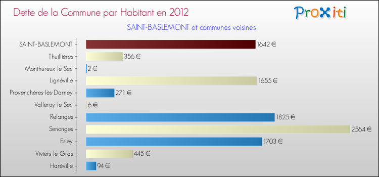 A Saint-Baslemont, la dette par habitant a donc augmenté de 2548.39 % entre 2000 et 2012.