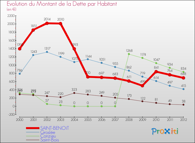 Par rapport aux 772 habitants de Saint-Benoît, en 2012 le poids de cette dette représente 688 € par habitant.