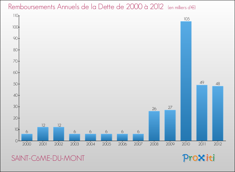 A Saint-Côme-du-Mont, ce montant de la dette est pourtant en baisse de 7.29 % par rapport à 2011.