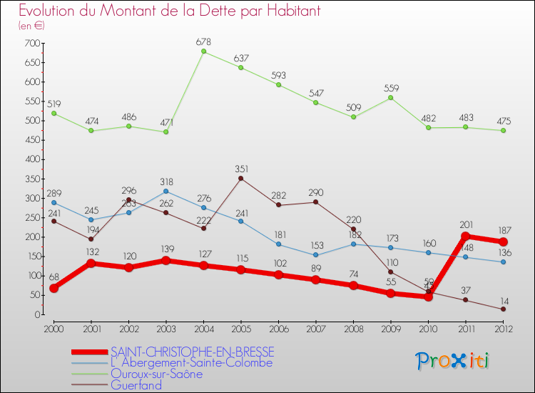 Par rapport aux 967 habitants de Saint-Christophe-en-Bresse, en 2012 le poids de cette dette représente 187 € par habitant.