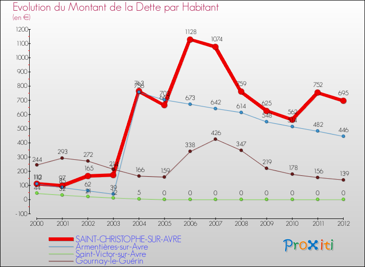 Par rapport aux 146 habitants de Saint-Christophe-sur-Avre, en 2012 le poids de cette dette représente 695 € par habitant.