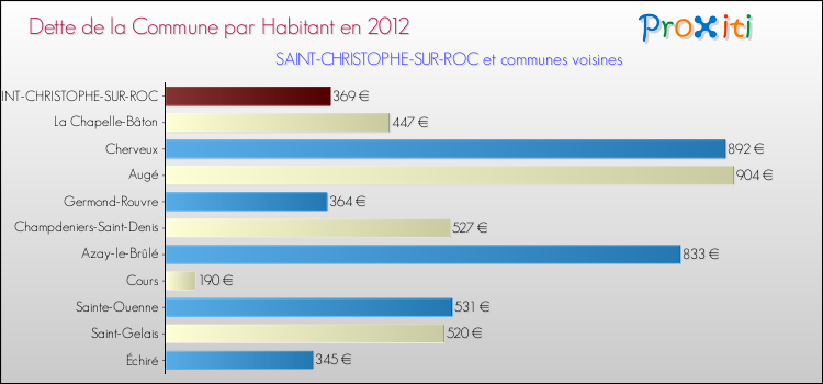 A noter : la valeur moyenne de la dette par habitant des communes françaises similaires à Saint-Christophe-sur-Roc était de 596 € par habitant, en 2012.