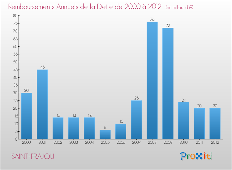 Par rapport aux 194 habitants de Saint-Frajou, en 2012 le poids de cette dette représente 957 € par habitant.