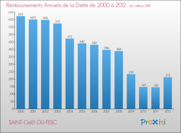 A Saint-Gély-du-Fesc, la dette par habitant a donc baissé de 27.59 % entre 2000 et 2012.
