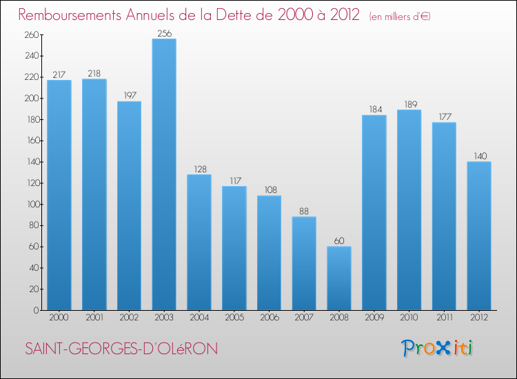 Par rapport aux 3572 habitants de Saint-Georges-d'Oléron, en 2012 le poids de cette dette représente 451 € par habitant.