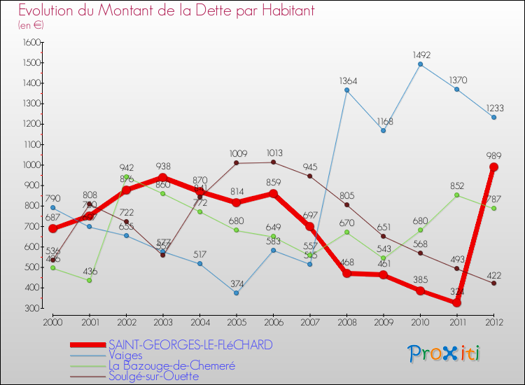 Par rapport aux 365 habitants de Saint-Georges-le-Fléchard, en 2012 le poids de cette dette représente 989 € par habitant.