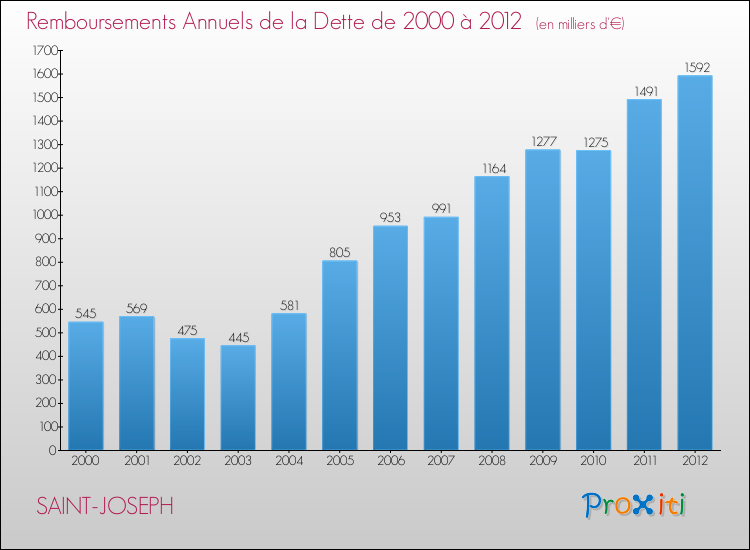 A Saint-Joseph, ce montant de la dette est en augmentation de 1.66 % par rapport à 2011.