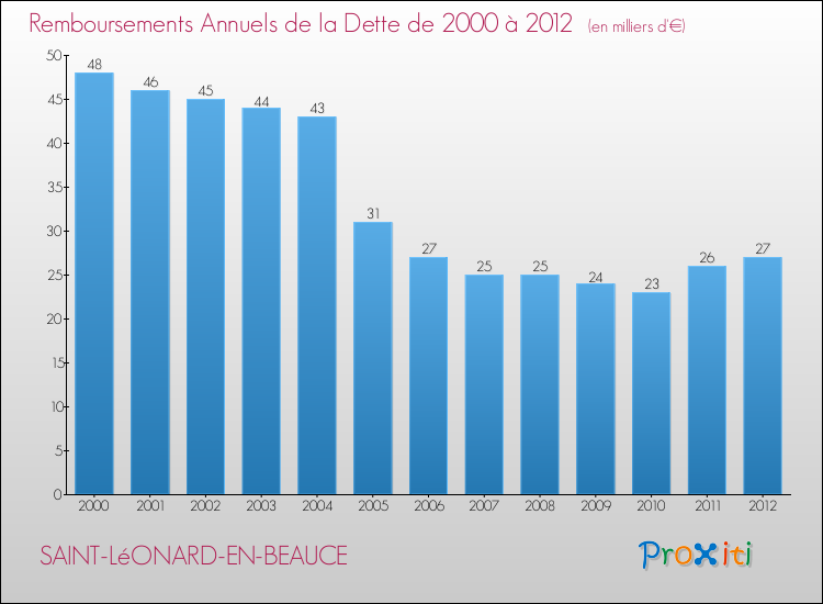 Par rapport aux 631 habitants de Saint-Léonard-en-Beauce, en 2012 le poids de cette dette représente 237 € par habitant.