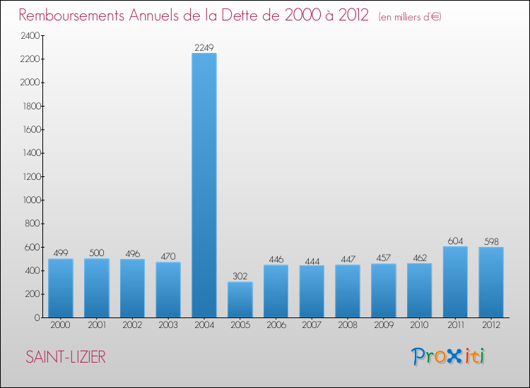A Saint-Lizier, la dette par habitant a donc augmenté de 26.63 % entre 2000 et 2012.