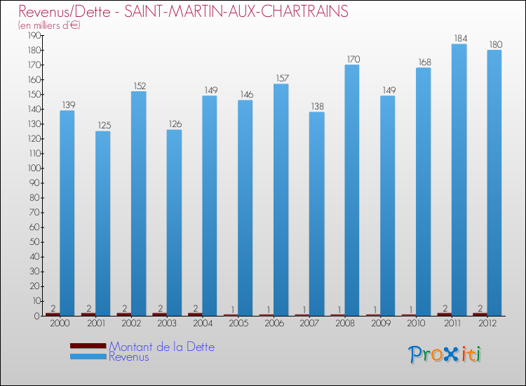Comparaison Revenus/Dette de Saint-Martin-aux-Chartrains (de 2000 à 2012)